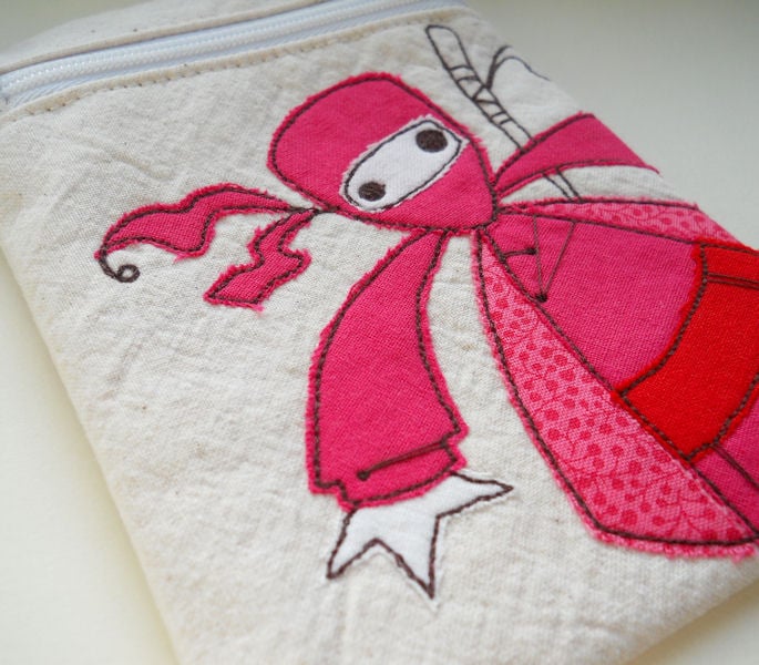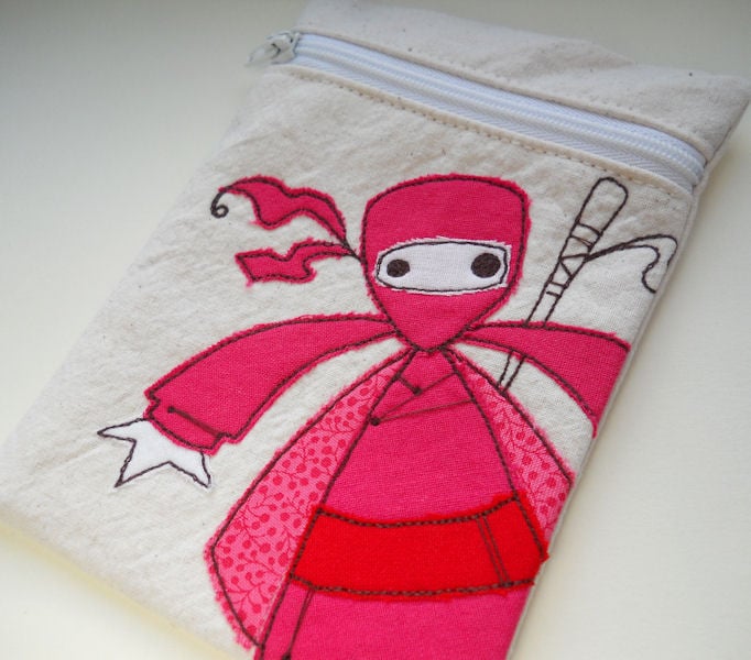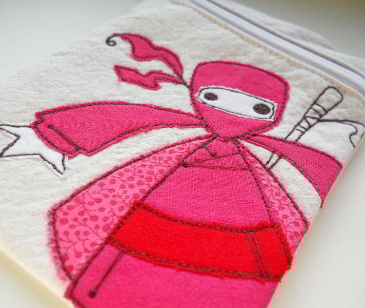 embroidered pink ninja gadget case.