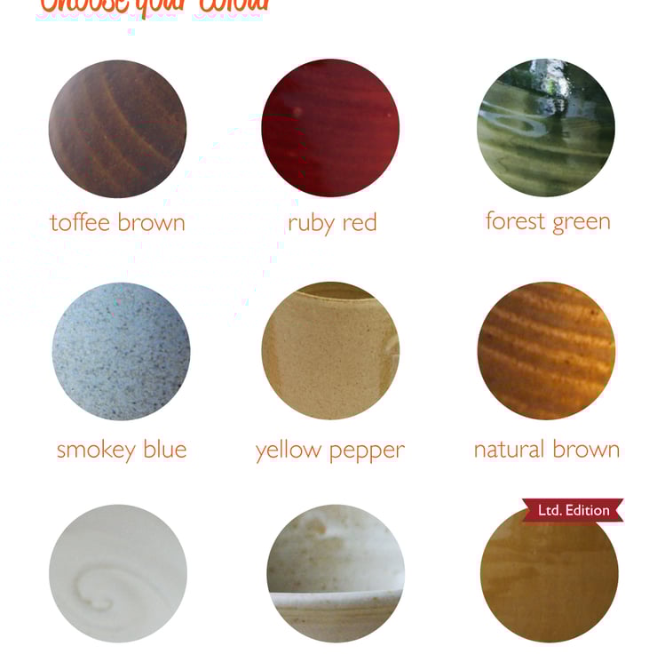 Hand thrown on my potters wheel these stoneware plates will be decorated in a glaze of your choice picked from the colour chart. They feature a large flat eating surface and a gently bevelled rim, each one is unique and can be made with or without textural throwing rings. These plates would make a beautiful handmade addition to your year-round dinner table.