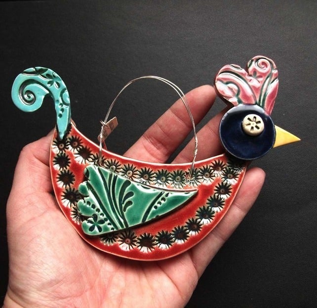This cute little bird is designed to hang on the wall or from a plant or anywhere you like really!
