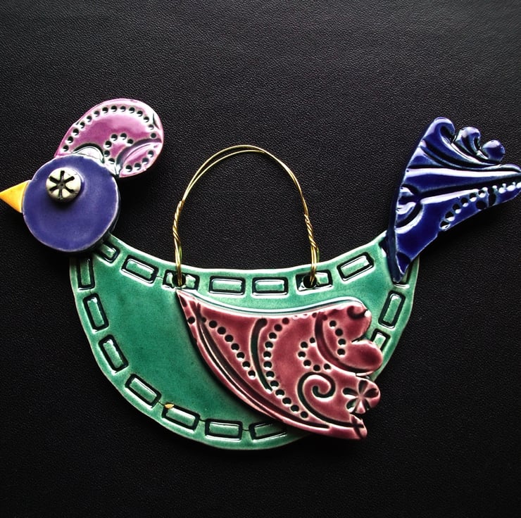 This cute little bird is designed to hang on the wall or from a plant or anywhere you like really!