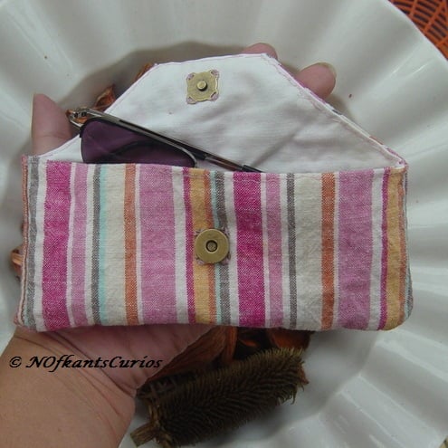 All the material for this glasses case has been upcycled, so perfect if you are into recycling and handstitched by myself to my own unique design in a shabby chic style, befitting its upcycled nature.