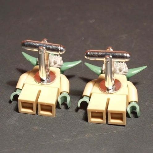 Cuff links made from limited edition LEGO® of Star Wars Yoda figures. Feel the force!