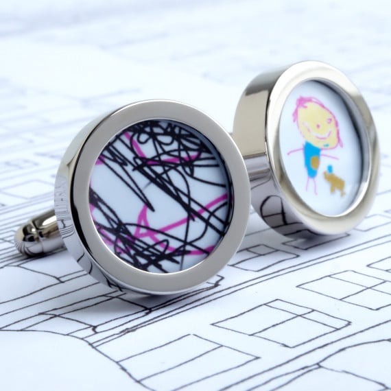 Custom cufflinks of drawings by your children. What could be more special than turning that art work created by your talented children into a special and unique pair of cufflinks. Ever wondered what to do with all those drawings your children bring home from playgroup, nursery or school? Well this is one great use for them sure to delight.