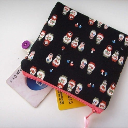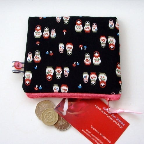 Pretty little Russian doll Japanese printed fabric coin purse, perfect for your coins, notes and cards.