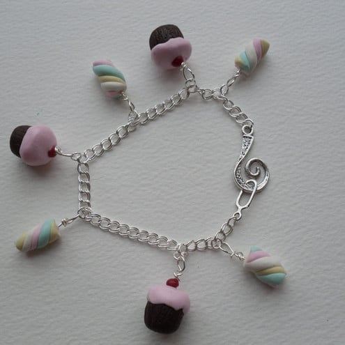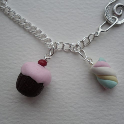 Just for fun mini food charm bracelet; charms made myself from polymer clay. Measures approx. 18cm long but can be shortened if requested. Finished with Tibetan silver swirl clasp.