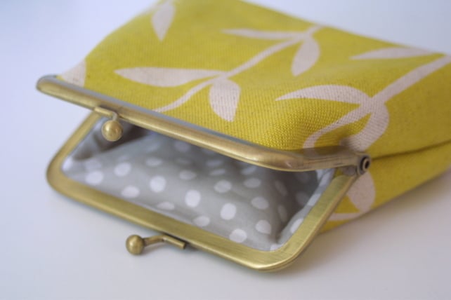 This handmade coin purse is big enough to hold cards along with your cash. Made from a modern print by South African designer Heather Moore.