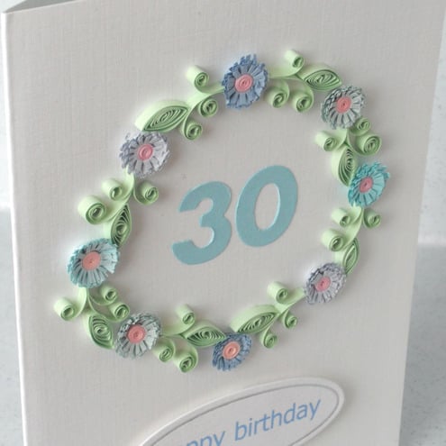 This paper quilling card can be personalised with any age at no extra charge. Just let me know in the notes at the checkout or send me a message via Folksy. Likewise if you would like a different colour choice.