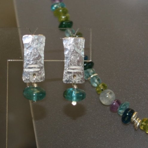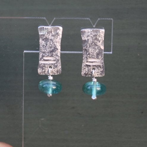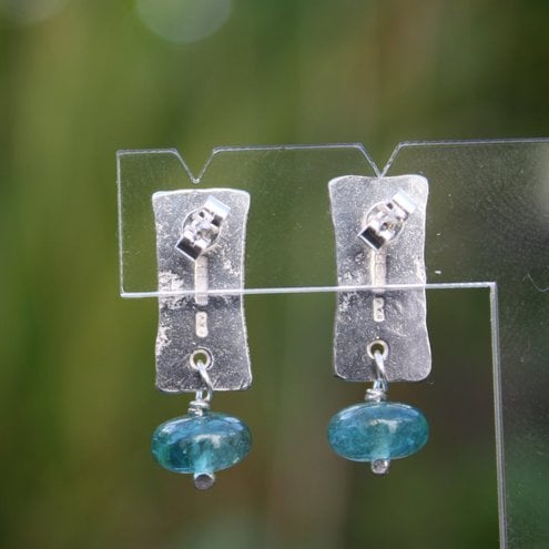 Simple lightweight forged silver earrings with gorgeous blue translucent apatite beads.