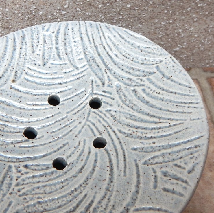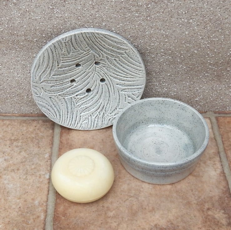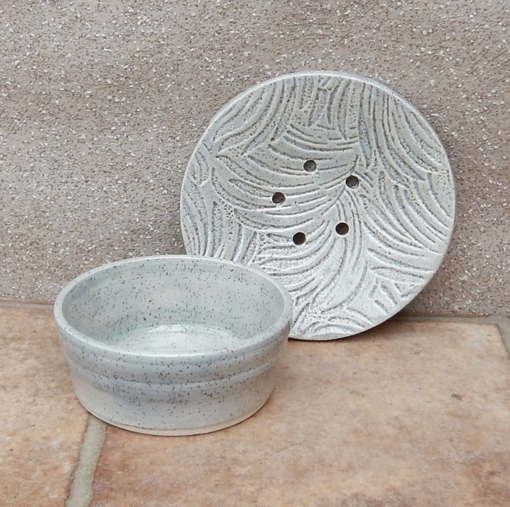 Made in two parts, this set is useful as a soap dish but also for discarded teabags, with a drain dish and a bowl beneath to catch the drips.
