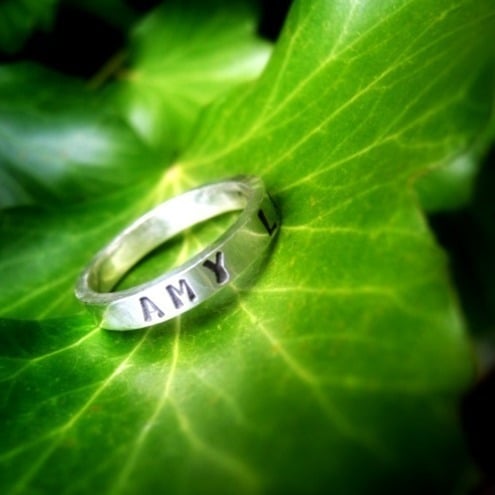 A simple Sterling Silver band, measuring approx 3mm wide, hand-stamped with the words/date of your choice, up to 20 characters including any spaces.