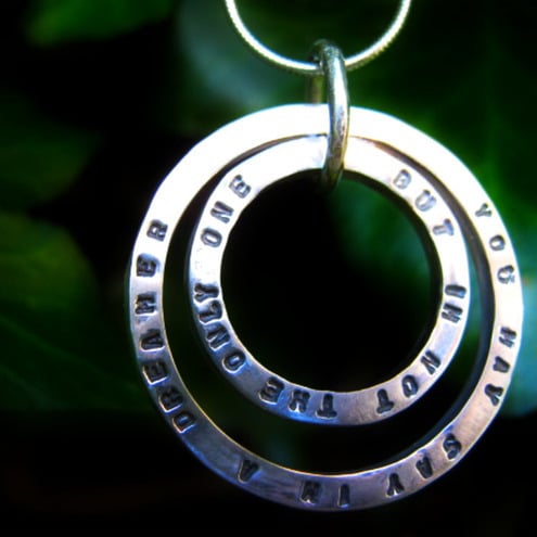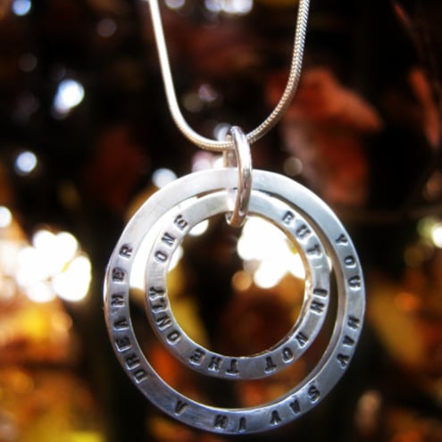 This sterling silver pendant can be stamped with any words you fancy!