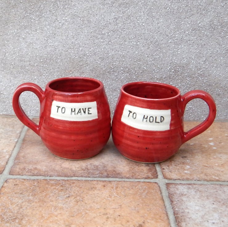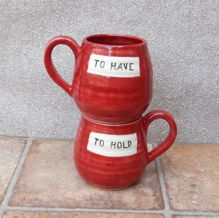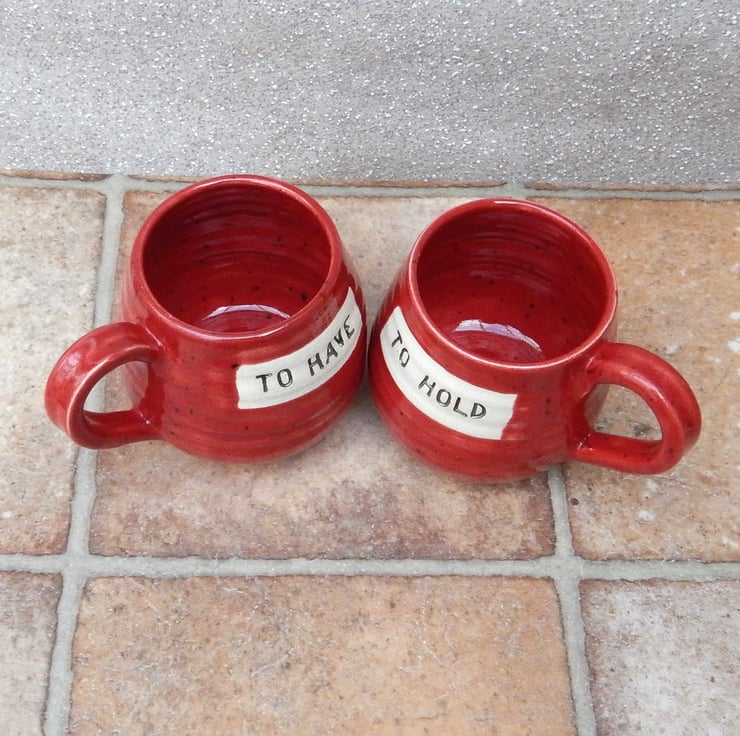 ceramic ceramics handthrown hand made wheelthrown thrown decor serving decorative artisan british studio uk wedding marriage couple to have and to hold red coffee tea cudlle mug hug mug
