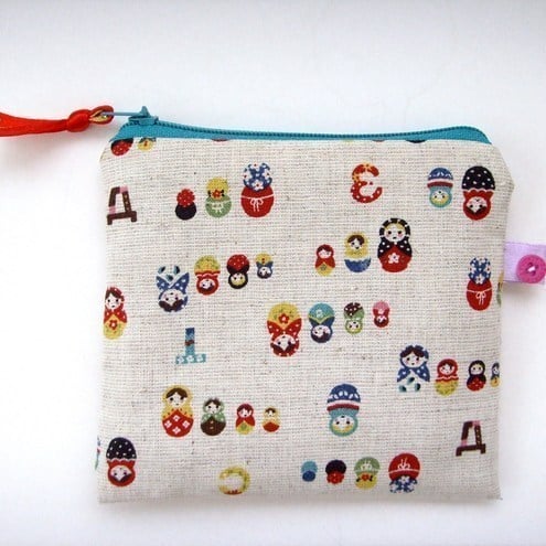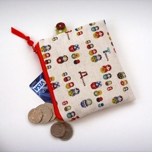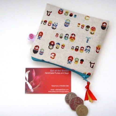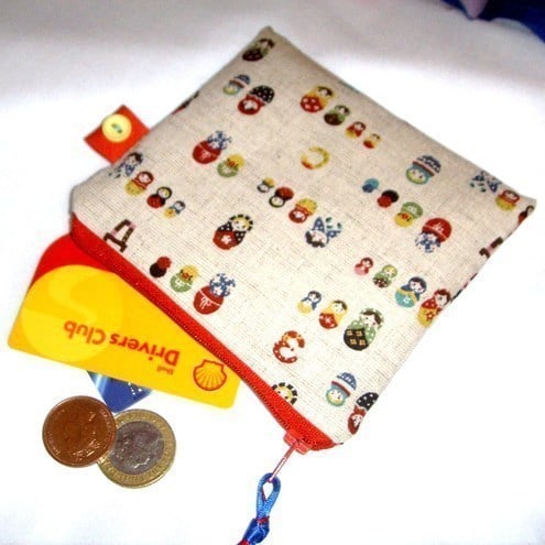 Pretty little Russian doll Japanese printed fabric coin purse, perfect for your coins, notes and cards.