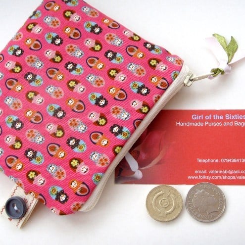 Pretty little Russian doll Japanese printed fabric coin purse, perfect for your coins, notes and cards.