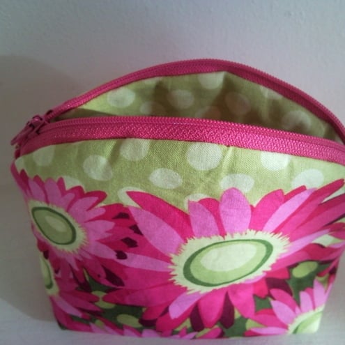 Small makeup bags. Made from new funky material and lined with a contrasting fabric.
