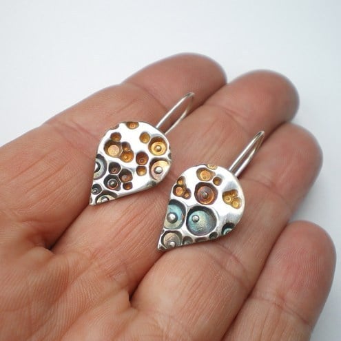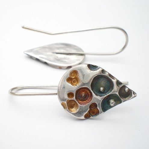 These teardrop shaped earrings measure 1.4cm at their widest point and the total drop is 2.8cm. The earrings have handcrafted sterling silver earring wires securely and neatly soldered to their backs.