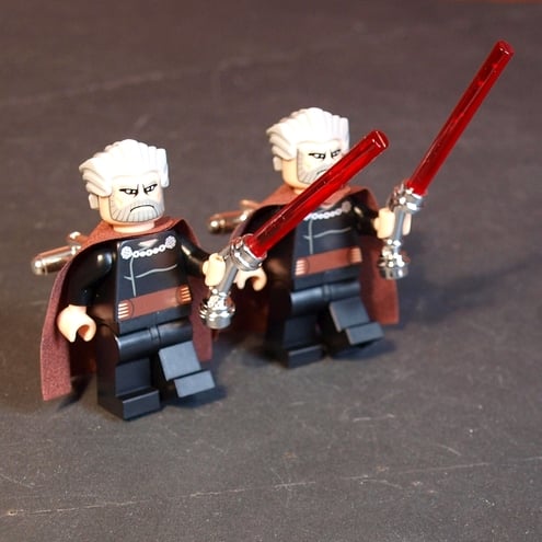 Cuff links made from limited edition Star Wars LEGO® figures of Count Dooku. These figures are from a limited edition range so get them while you can!