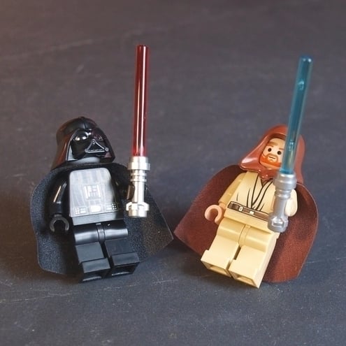 Cufflinks made from limited edition Star Wars LEGO® figures of Obi-Wan and Darth Vader, fighting the battle between good versus evil. These figures are from a limited edition range so get them while you can!