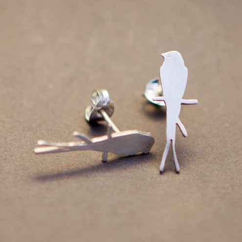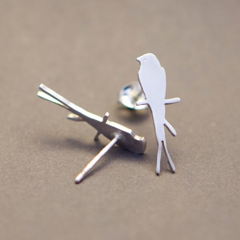 These beautiful handmade bird silver stud earrings are inspired by the Swallow sitting on a telegraph wire. The simple design makes a lovely silhouette.
