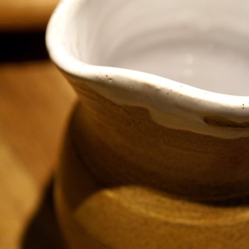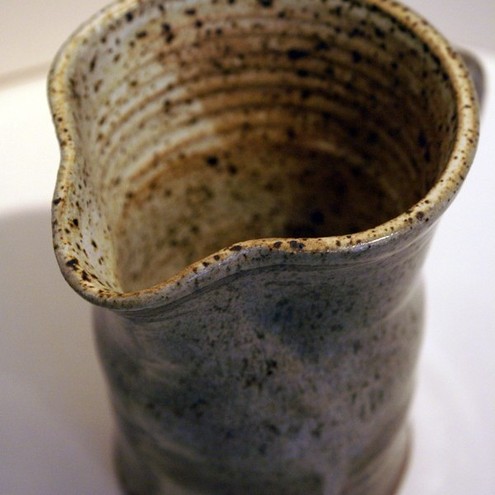 Perfect for either milk or water as part of your early morning breakfast routine. The outside has been smoothed off on the wheel but inside features textural throwing rings. Placing your hand inside the jug you can feel where my hands have pulled the clay upwards during throwing.