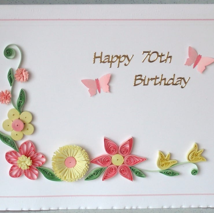 Perfect for celebrating any special birthday, this quilled 70th birthday card can be personalised for any person and any age. Just leave me a note as you check out.