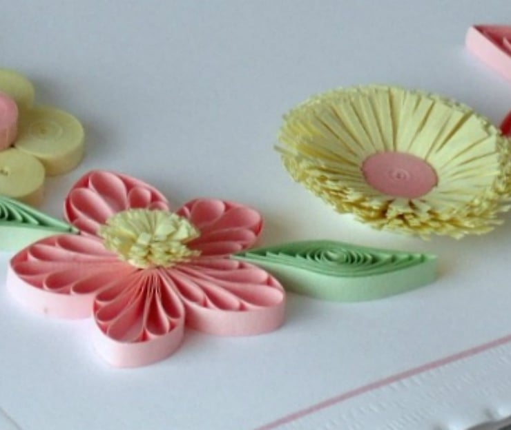 All the quilling on this quilling card is handmade by me! Each petal, bloom and leaf is handrolled from strips of coloured paper. The result is a beautiful original quilled birthday card which makes a great keepsake for the future.