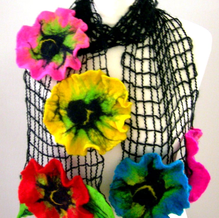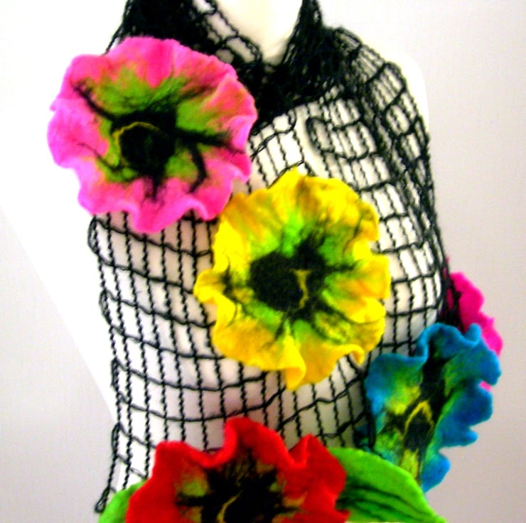 SALE... Hand Felted, Wool Jewelry FELTED necklace scarf -100% WOOL MERINO
