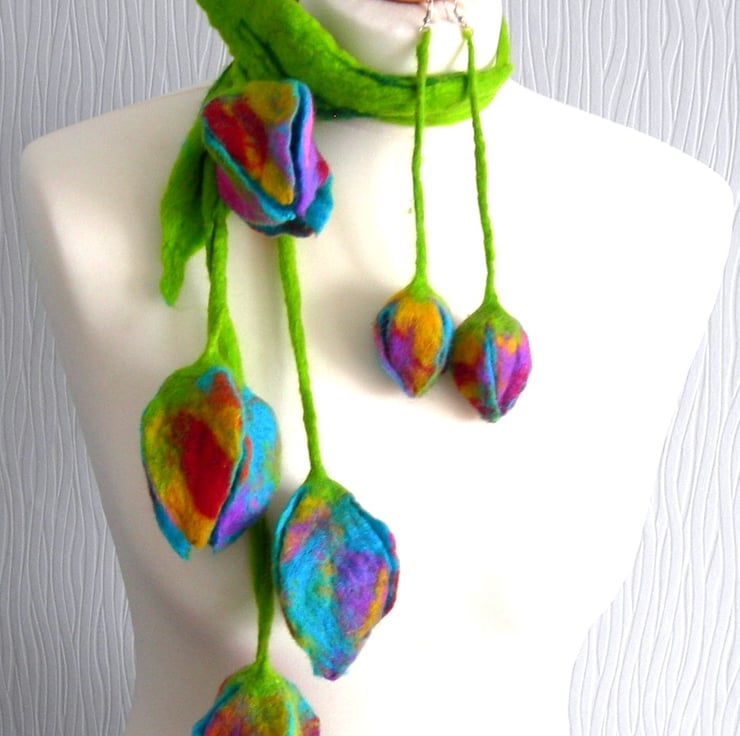 SALE... Hand Felted, Wool Jewelry necklace,earring,-100% WOOL MERINO
