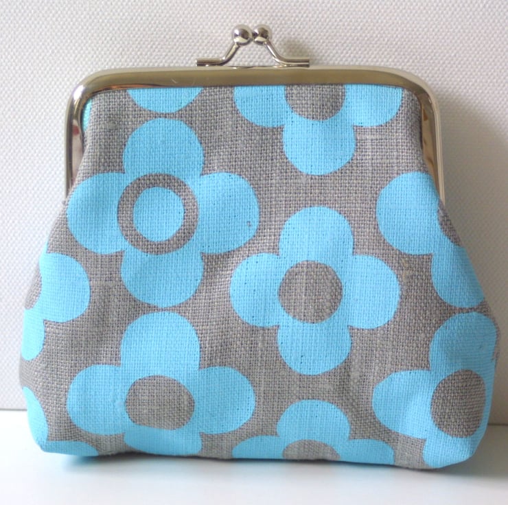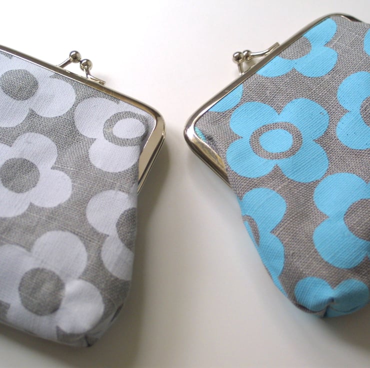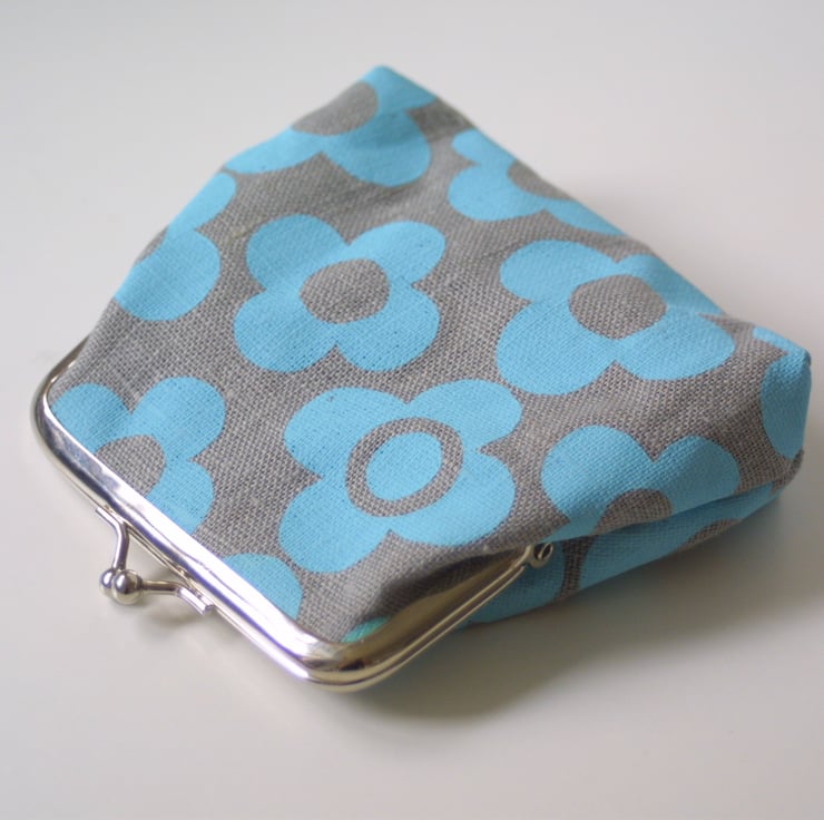 This handmade coin purse is big enough to hold cards along with your cash. The design is screenprinted by hand onto pure linen.