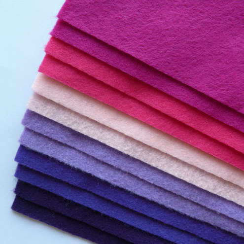 Our ‘Pinks & Purples’ pack is made up of 12 sheets of our recycled felt. Each sheet is 12 x 9 and you will get 2 sheets each of 6 different colours.