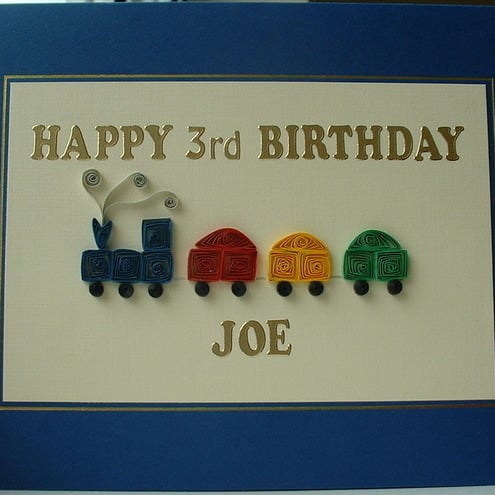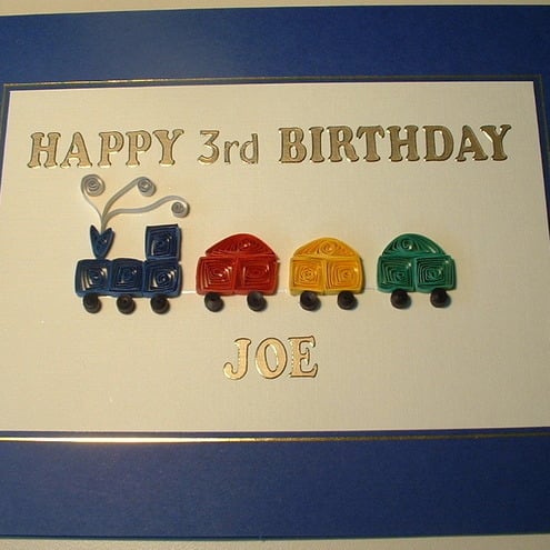 Birthday card, 1st, 2nd, 3rd, 4th, 5th, quilling train
