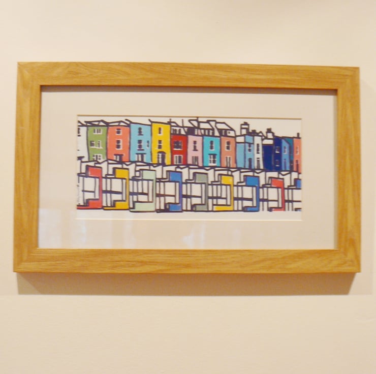 Original print showing the colourful houses of Bristol. One of our favourite views, as it's what we see while having a relaxed drink on a summers evening, sitting outside The Cottage pub on Bristol Harbourside. Hand drawn on a graphics tablet and printed to A4 size on high quality archival matte paper. Signed by the artist.