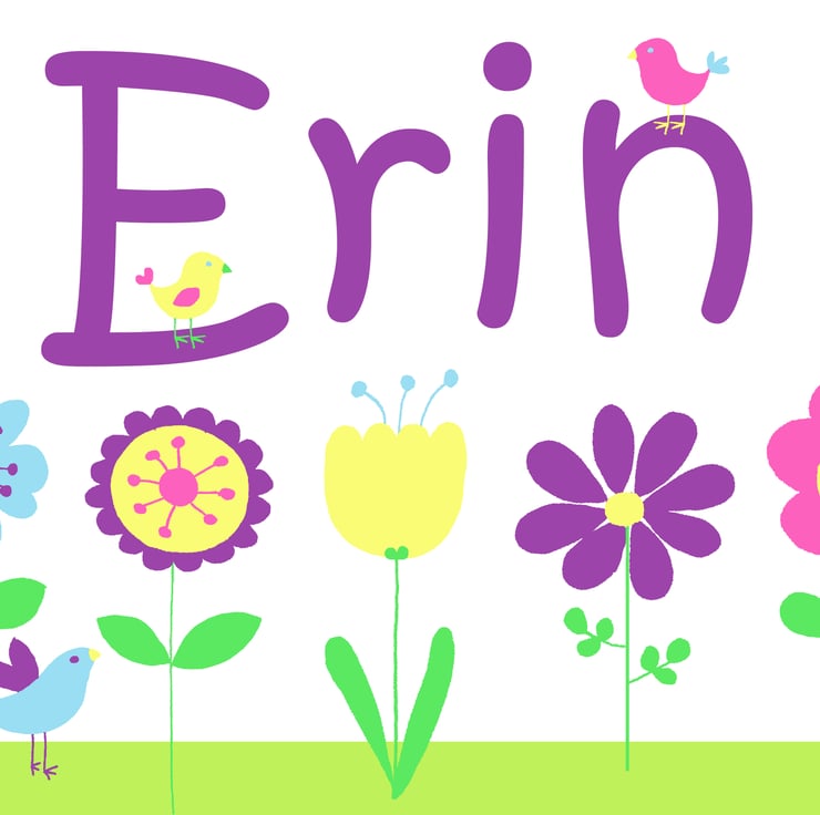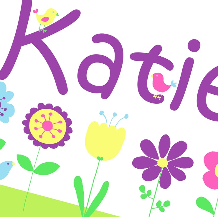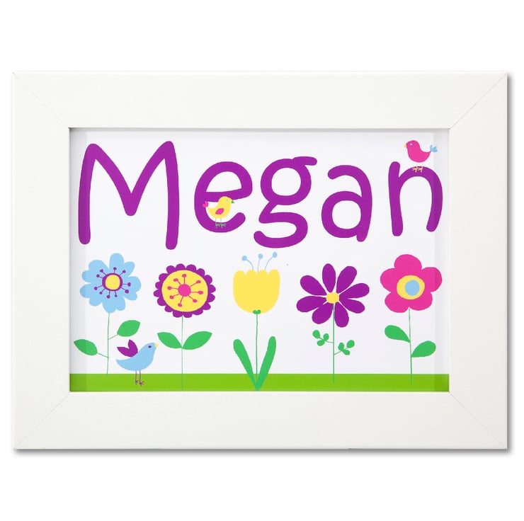This pretty name picture is an original, personalised framed print designed to go on a girl's bedroom door. They look equally great in any other part of their bedroom or playroom too though! The frame is light and the 'glass' is actually acrylic so can easily be attached to the door or wall using double sided sticky tabs. No nails required!