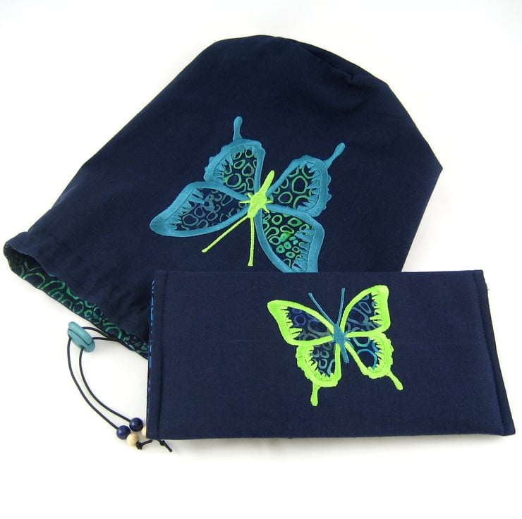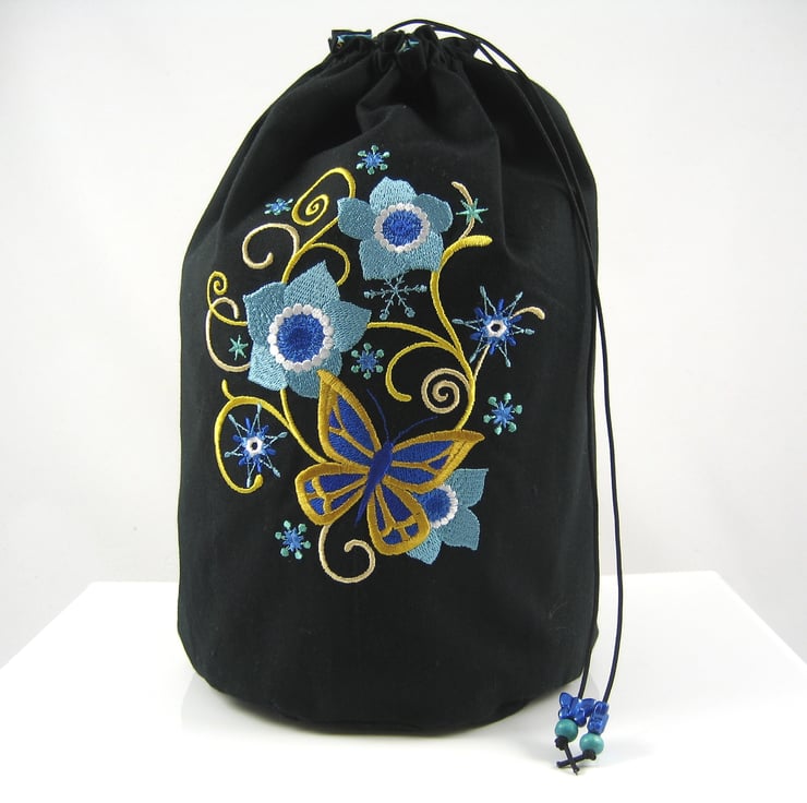 This listing is for an embroidered project bag and notions purse. They will be made from bottle green cotton and embroidered with the design shown in the first picture. Both will be lined with the fabric shown.