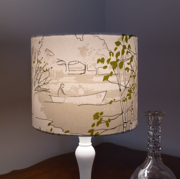 Drum lampshade covered in 'Brompton Road' linen fabric, suitable for a table lamp. If you'd like this as a pendant, just let me know.