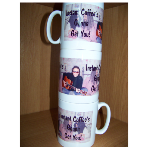 Ceramic Mug bearing The Famous John & Yoko Character and Catchphrase (Instant Coffe's Gonna Get You!) from Stevie Riks.