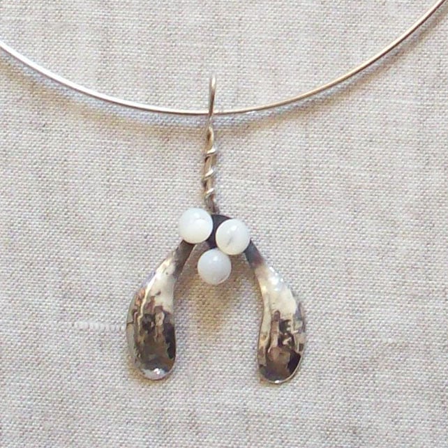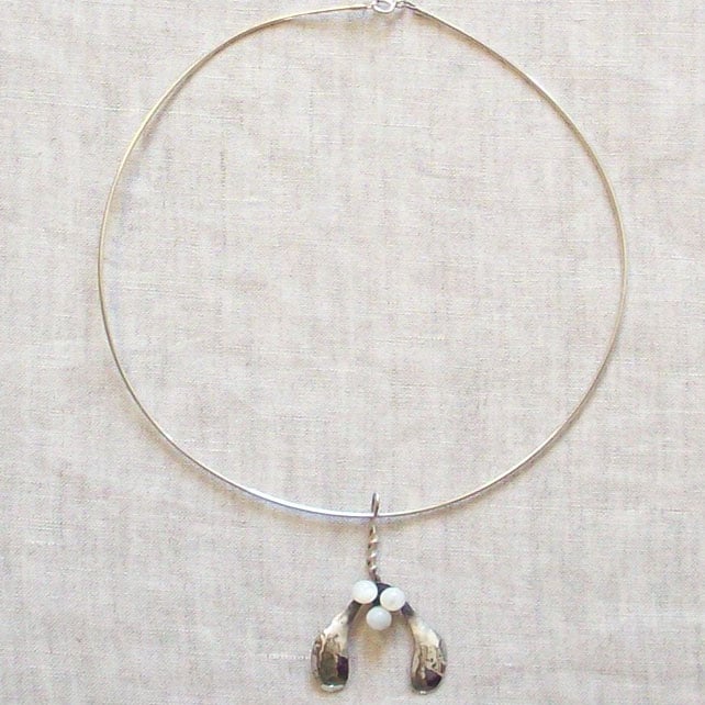 From my "Myth & Nature" Collection. I can't guarantee that this piece of mistletoe was cut by Druids with a golden sickle, as is traditional, but then this lovely sterling silver piece is a way of getting your kisses all year round! Hung from a lovely silver choker. All hallmarked and comes in a gift box