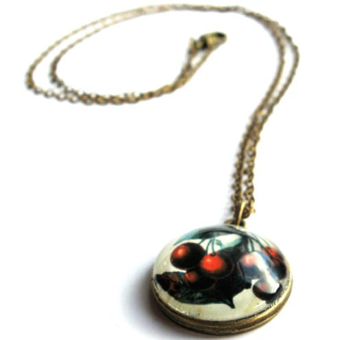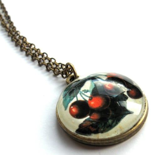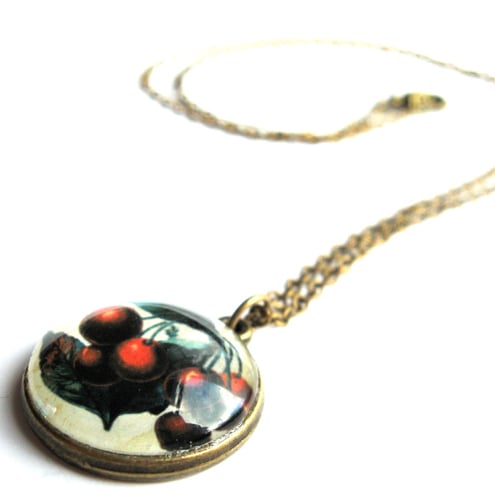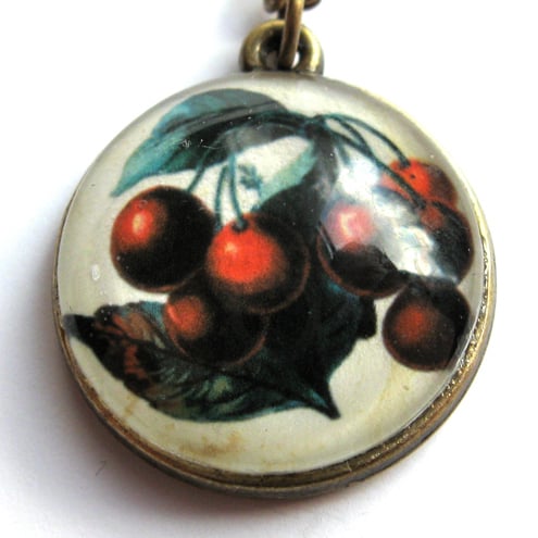 This is a gorgeous necklace featuring vintage cherries which look good enough to eat!