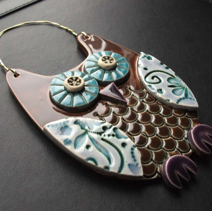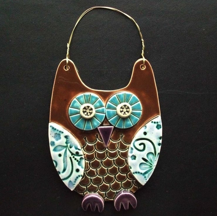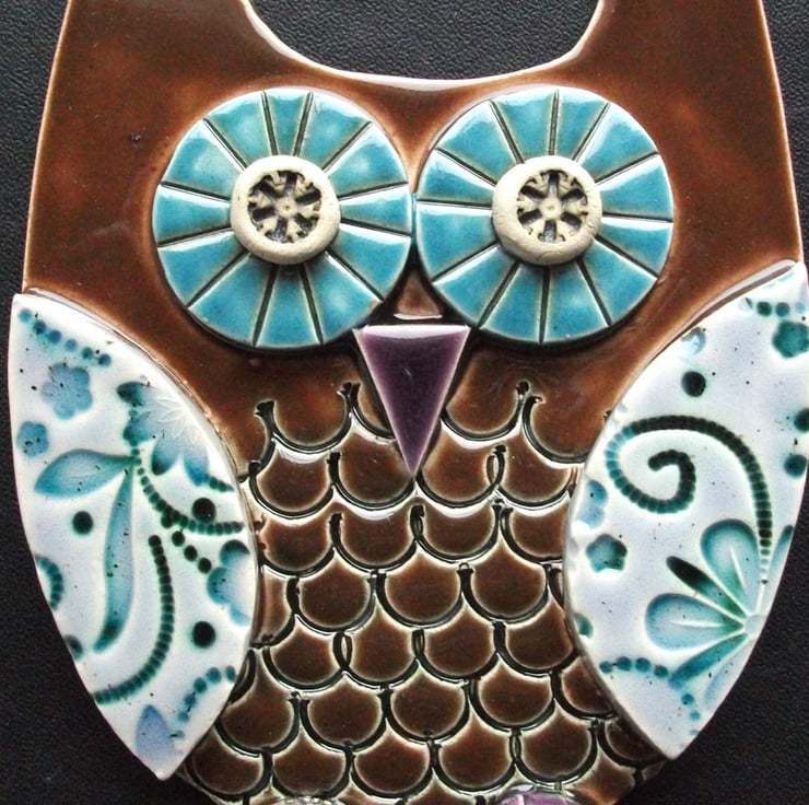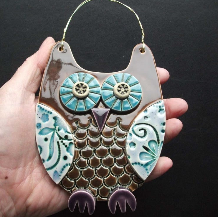 This cute ceramic owl is made from white earthenware clay with all the individual pieces hand cut and decorated.