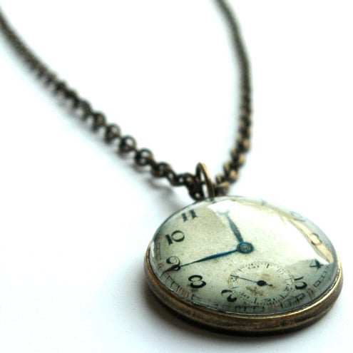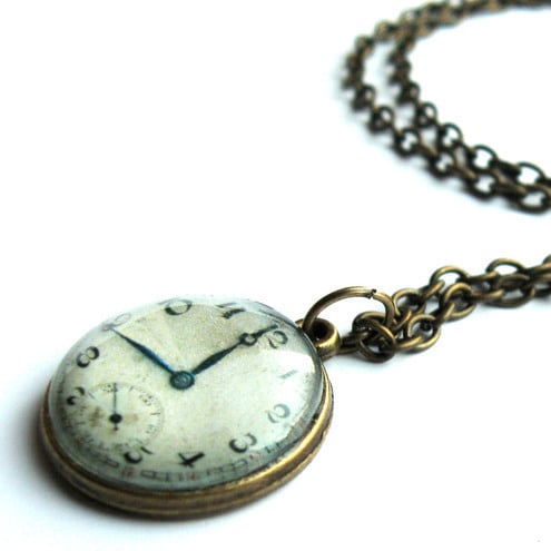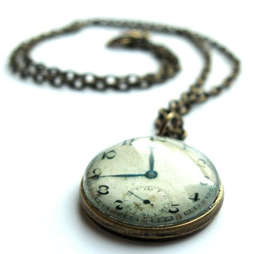 This is a gorgeous necklace featuring a clock face taken from a photograph of a Victorian timepiece.