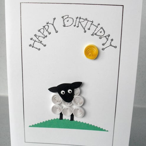 Featuring a cute quilled sheep, this card has a message readng Happy Birthday in raised silver lettering. It is suitable for any recipient - children, men, boys, girls.