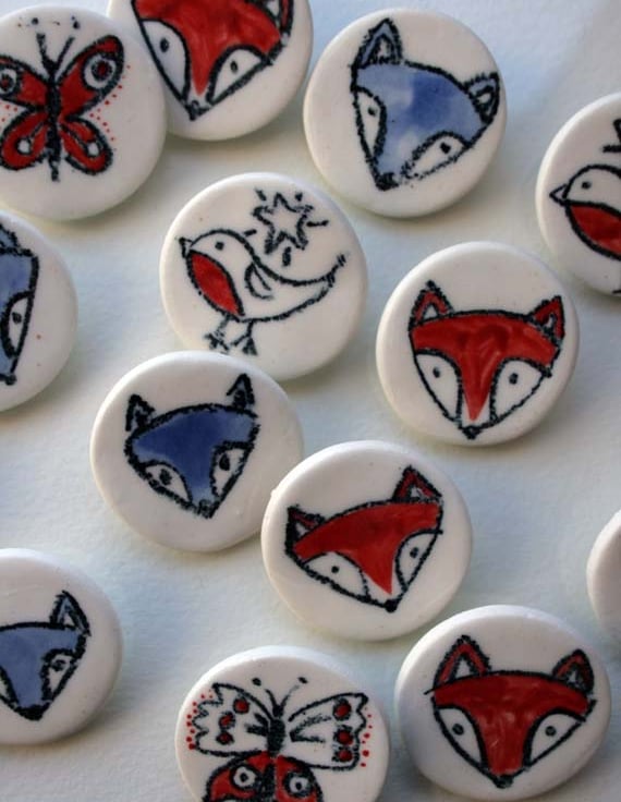 As they are hand drawn they do all vary slightly. There are 4 designs to choose from:a red fox, a blue wolf, Robin with star, and Butterfly. Please specify when ordering which you would like.