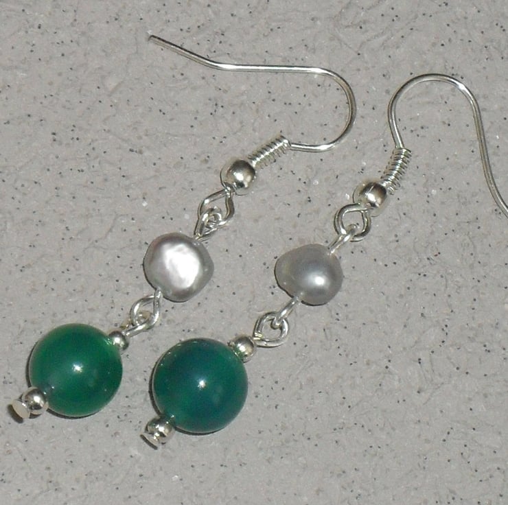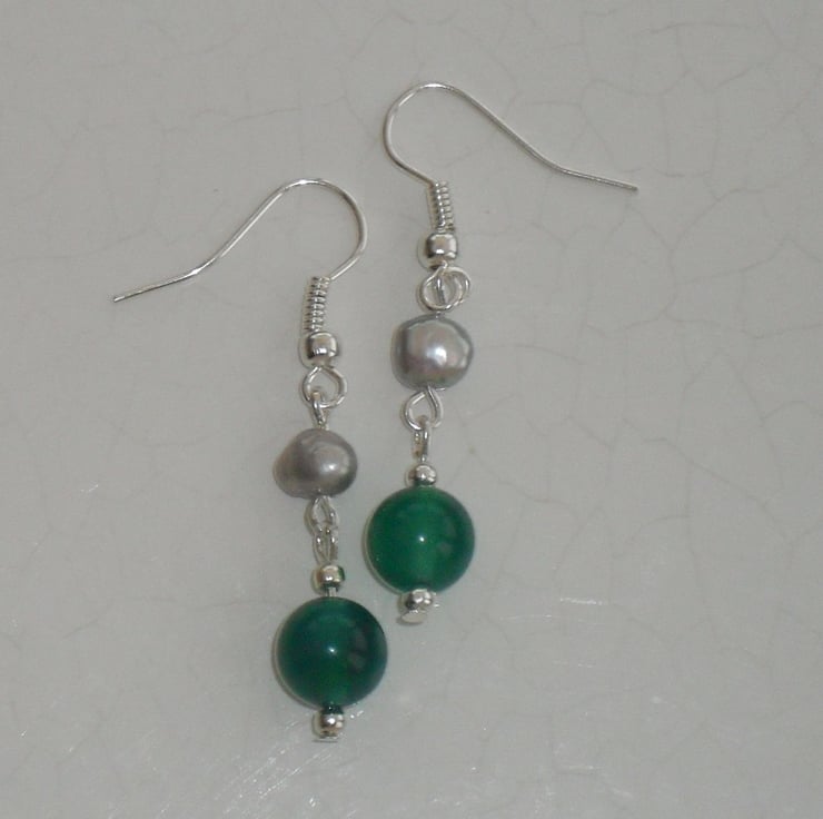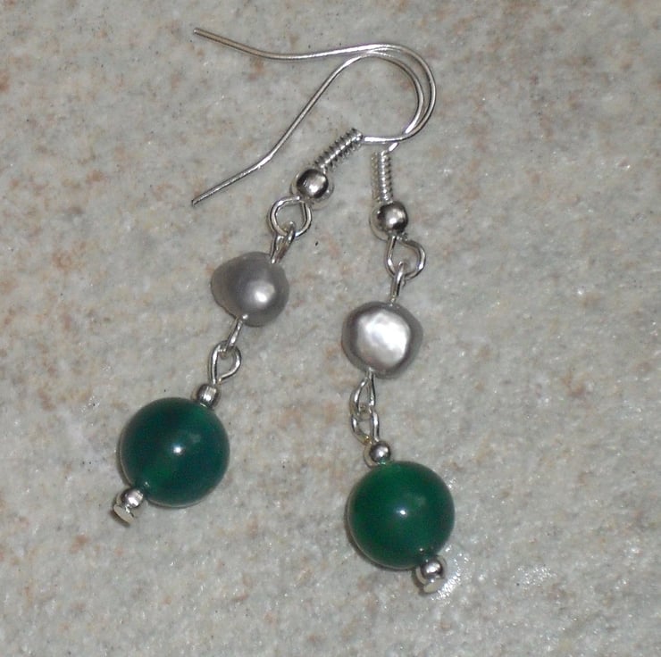 Made with beautiful white freshwater pearl and ggreen jade, these earrings look stunning.