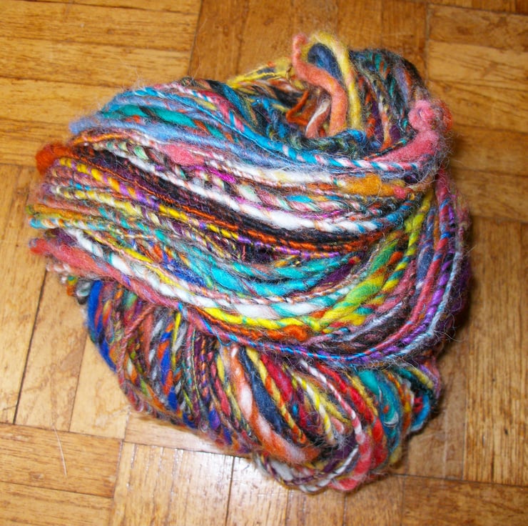 I had a creative moment and wanted to experiment with blending different fibres and colours to create a unique art yarn.