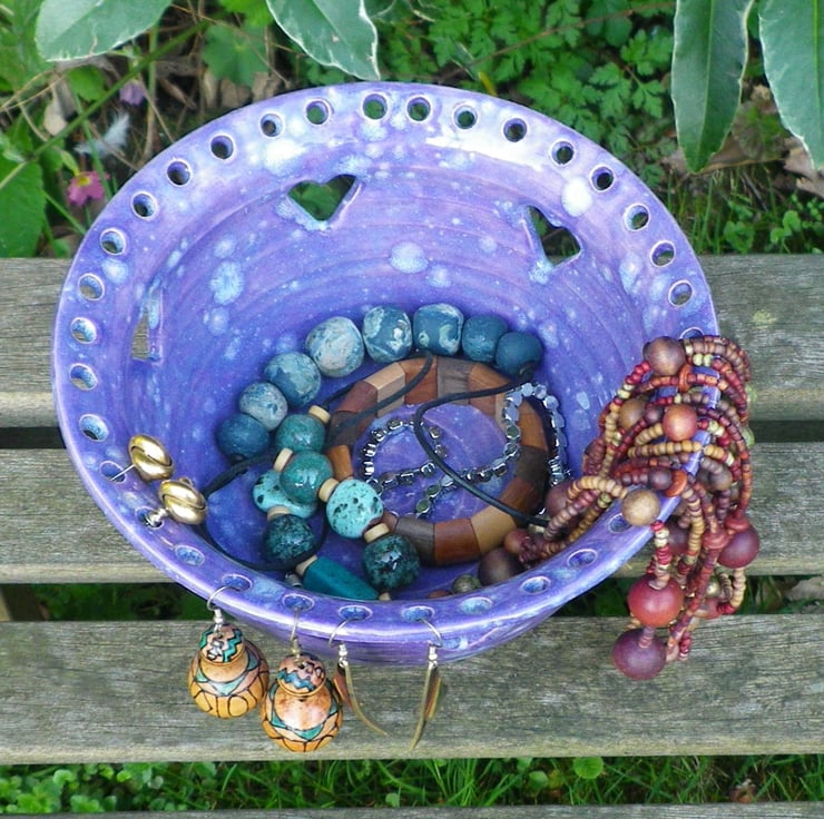 With little holes all the way round to hold your earrings, it also has a nice big dish for all your bracelets or bangles.