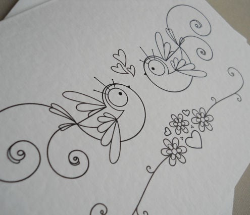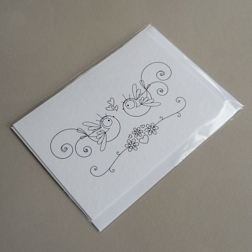 this quirky card has been left without colour, so that you can do just that! customise it and colour it with art pens, inks, felt tips, pencil crayon, watercolours... whatever takes your fancy!
