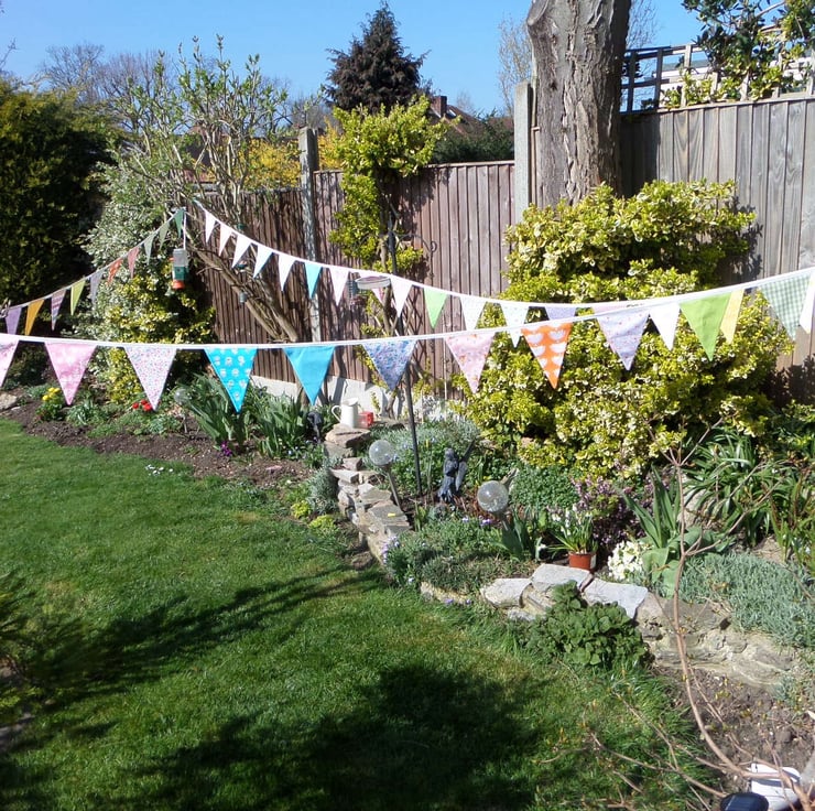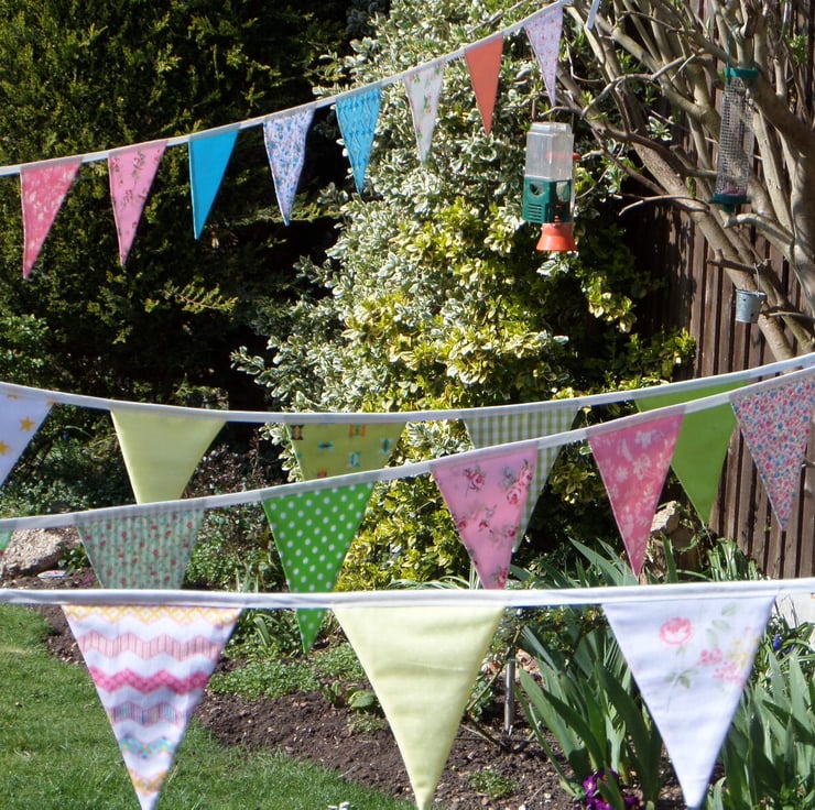 Great for indoors or out, garden party, street parties, afternoon tea or tree house, or wedding. This colour selection includes new, recycled and vintage cottons and new cottons with designs from the likes of Laura Ashley and Liberty's in London.