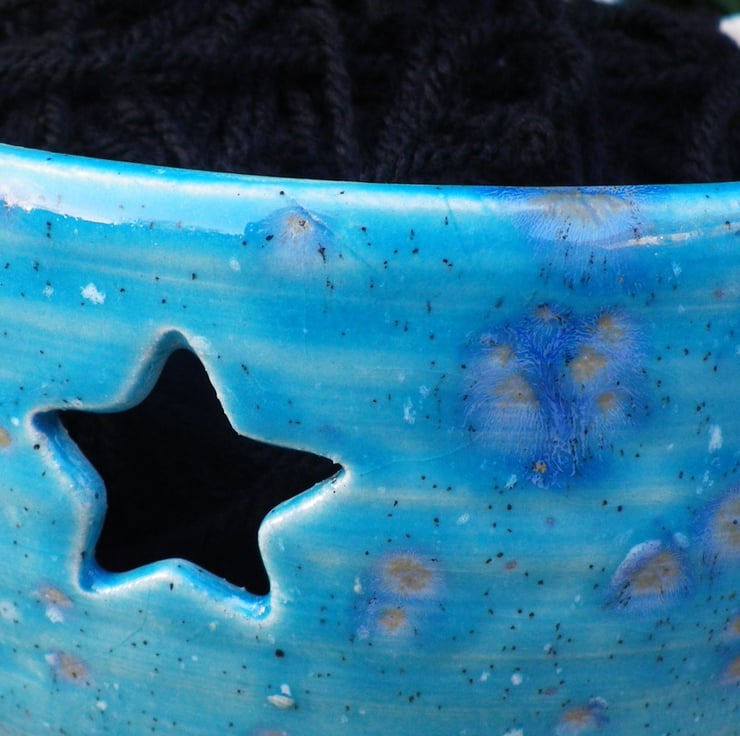 I have finished it in a pretty aquamarine turquoise speckle crystal glaze.