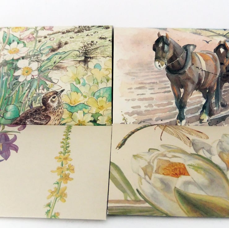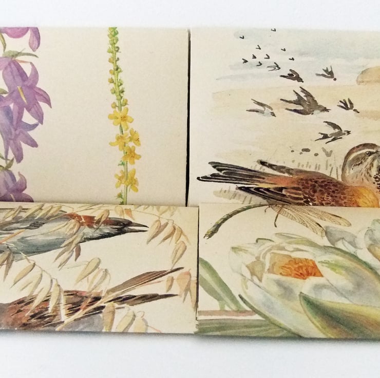 A set of 4 upcycled envelopes made from the pages of a discarded copy of the lovely book, The Country Diary of an Edwardian Lady by Edith Holden. In 1906, Edith Holden recorded in words and paintings the flora and fauna of the British countryside through the seasons. These envelopes show some of her gorgeous pictures.
