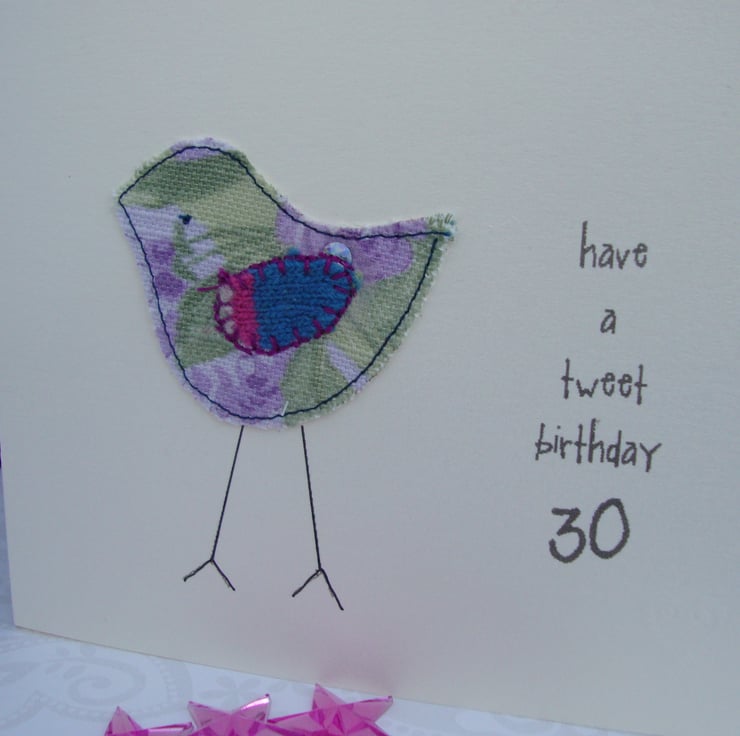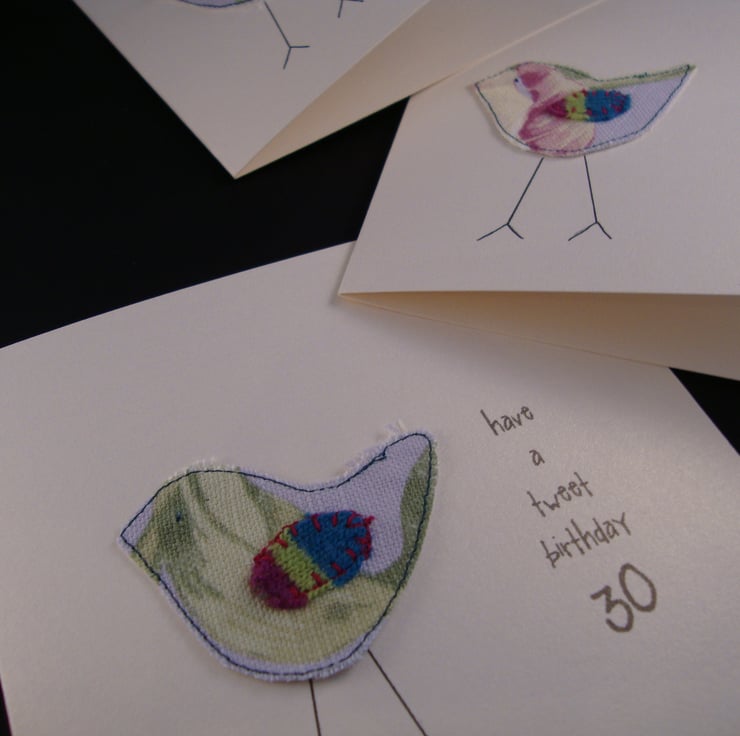 each card comes with the message have a tweet birthday with 30 printed onto it and measures 14cm x 14cm with a matching envelope and sprinkles.